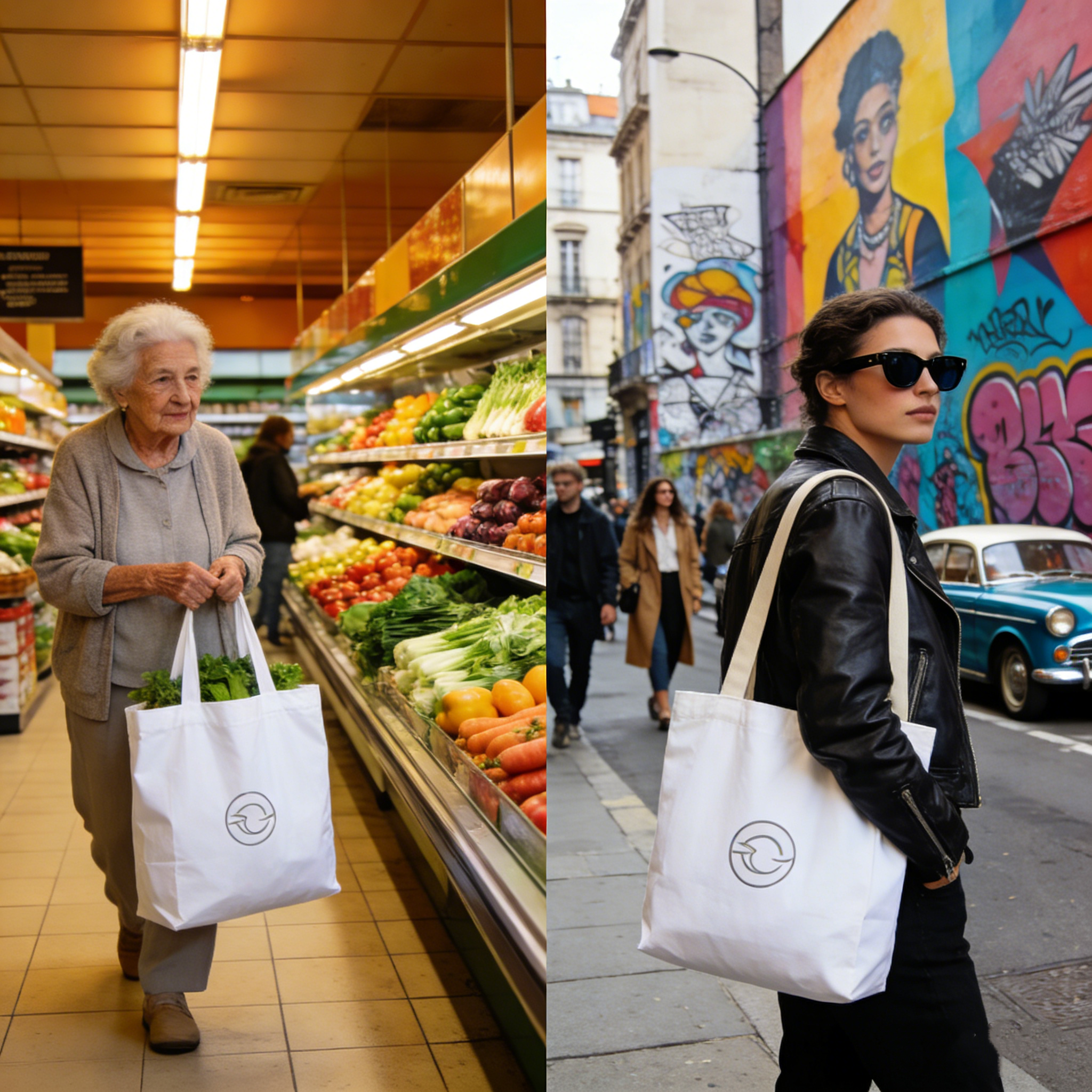 Much like a museum tote or an iconic bookstore bag, the grocery bag started to signal cultural awareness rather than wealth. Carrying it suggested that the owner had been somewhere, understood something, and belonged to a specific cultural moment.