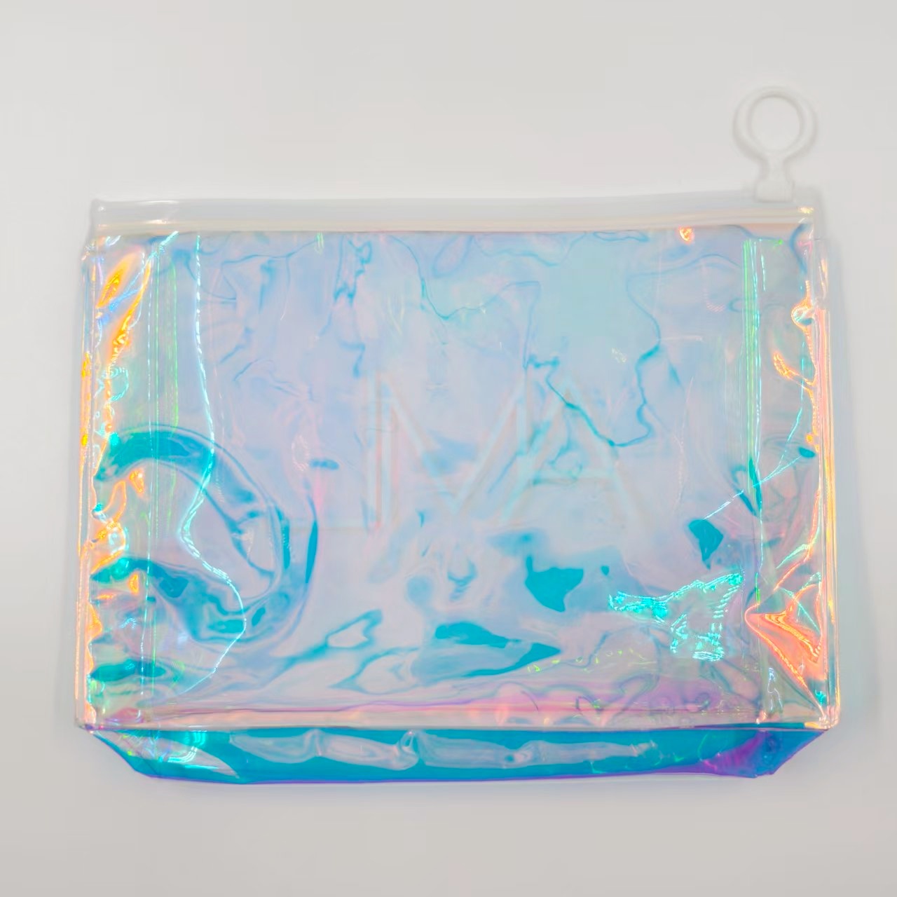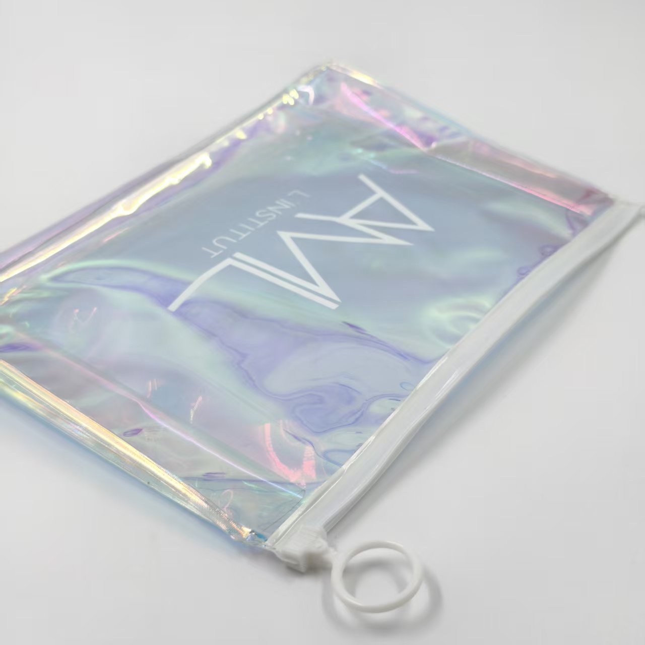 Custom Holographic PVC Zipper Pouch Logo Printed Reusable Brand Promotion Cosmetic Bag