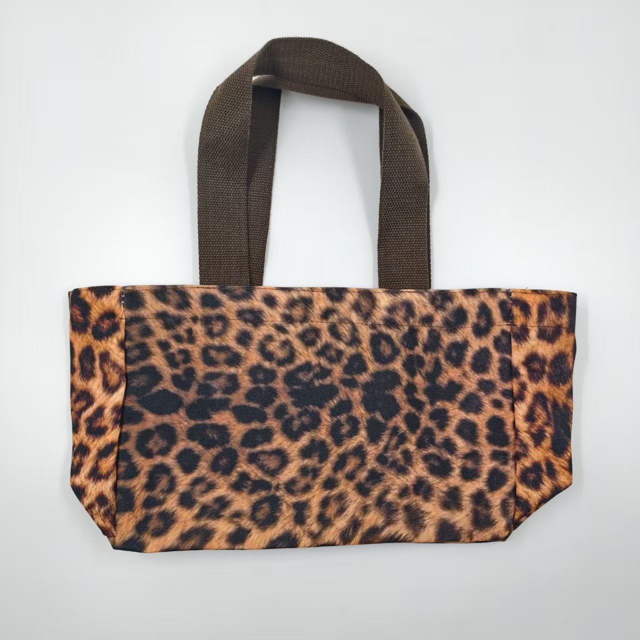 Large Capacity Leopard Cotton Tote Bag Custom Logo Eco-Friendly Reusable Shopping Bag with Canvas Handles