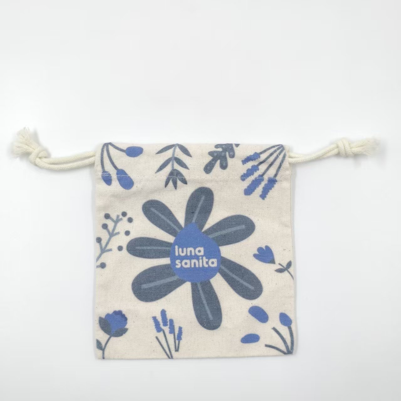 Стильная экологичная сумка на завязках Luna Sanita с цветочным узором синего цвета.