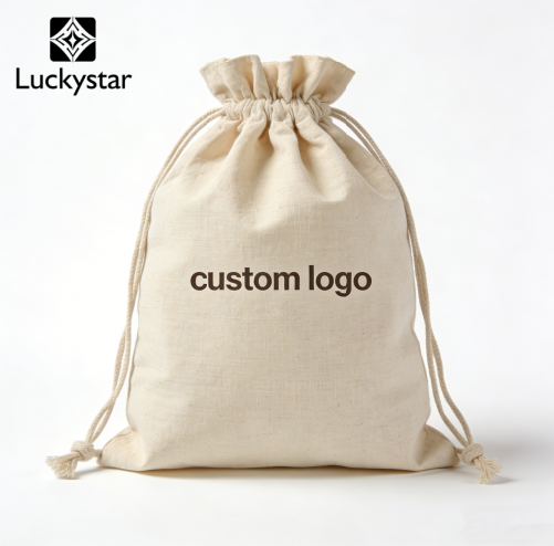 Экологичный складной хлопковый мешочек для хранения ювелирных изделий на завязках с индивидуальным логотипом.