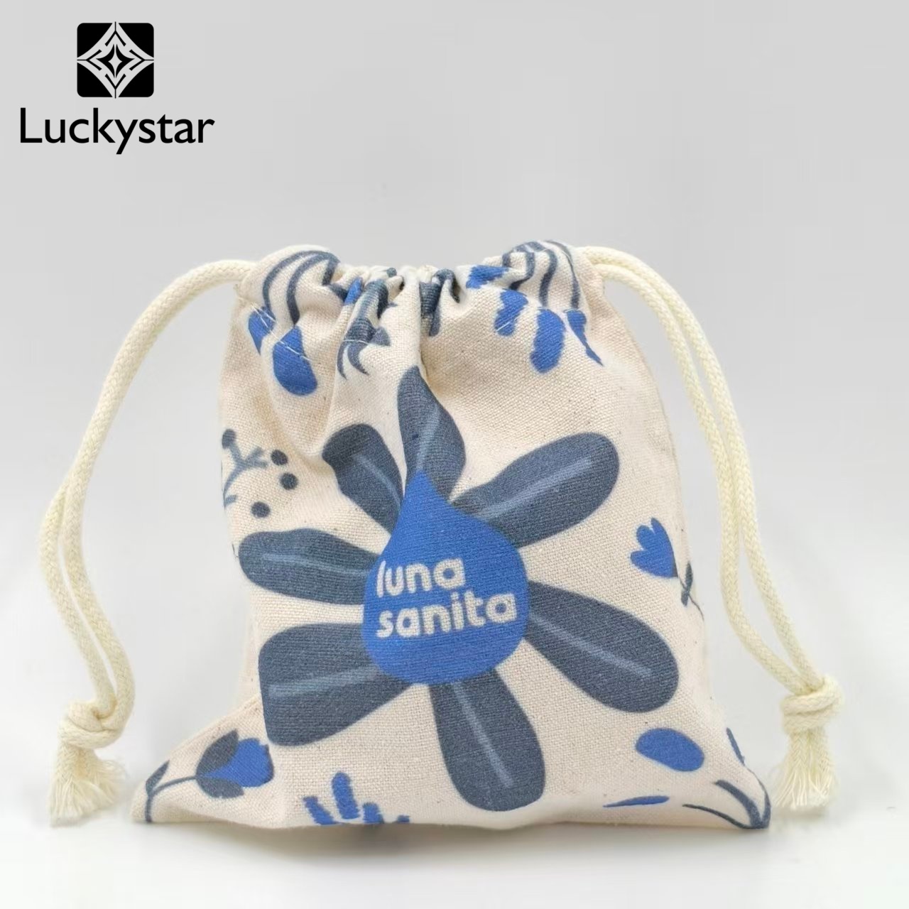 Стильная экологичная сумка на завязках Luna Sanita с цветочным узором синего цвета.