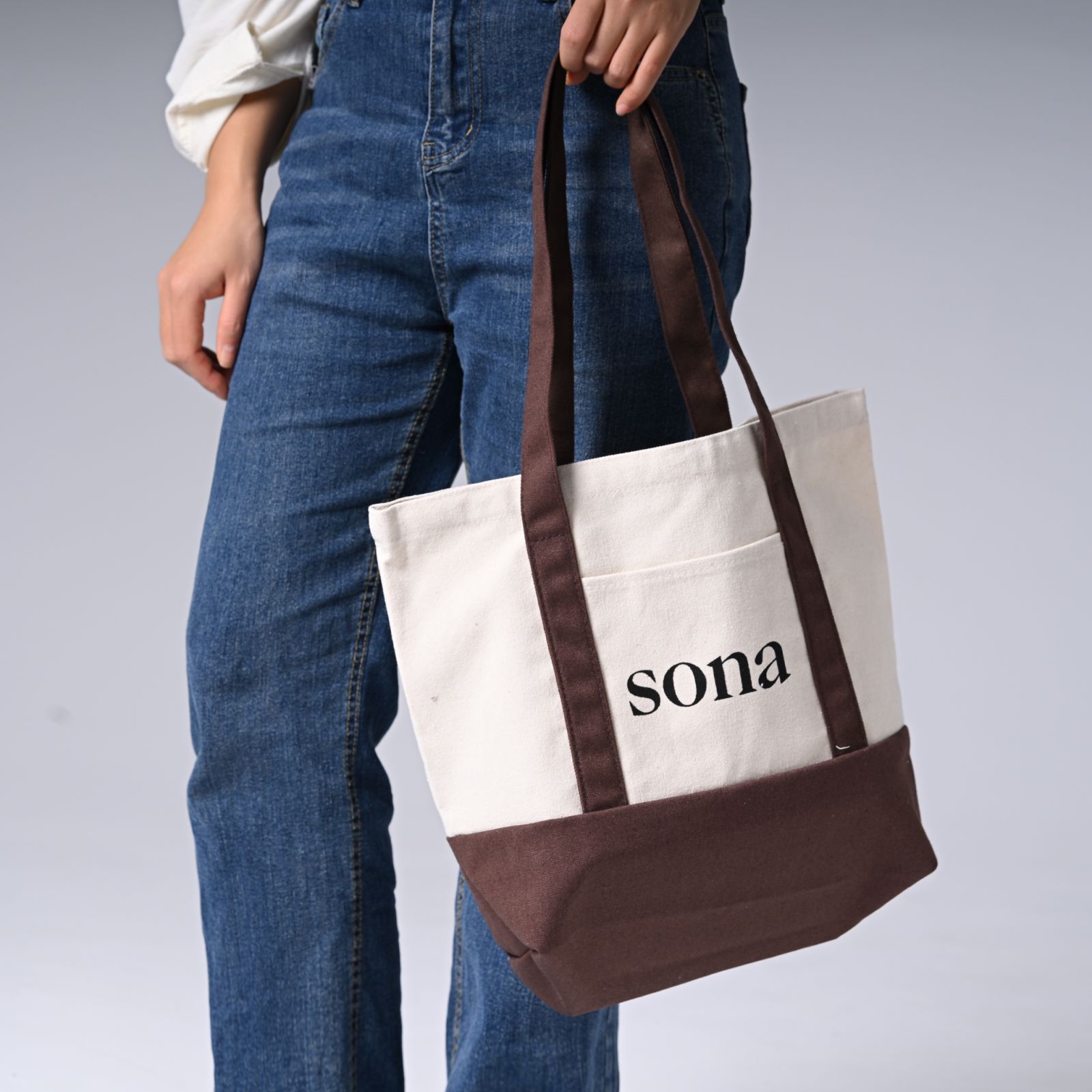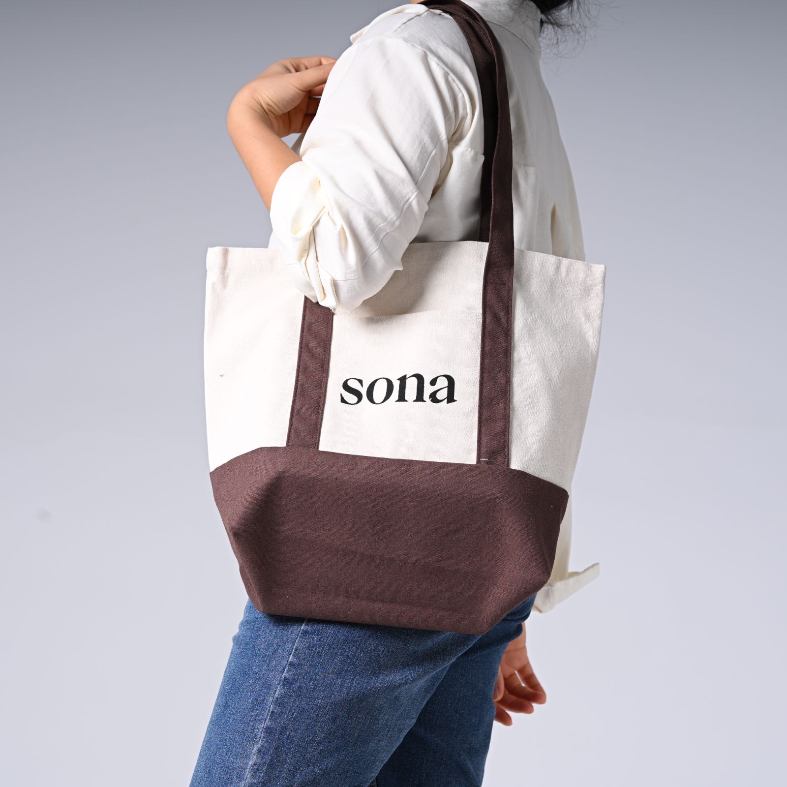 100%纯棉印有标志的购物袋