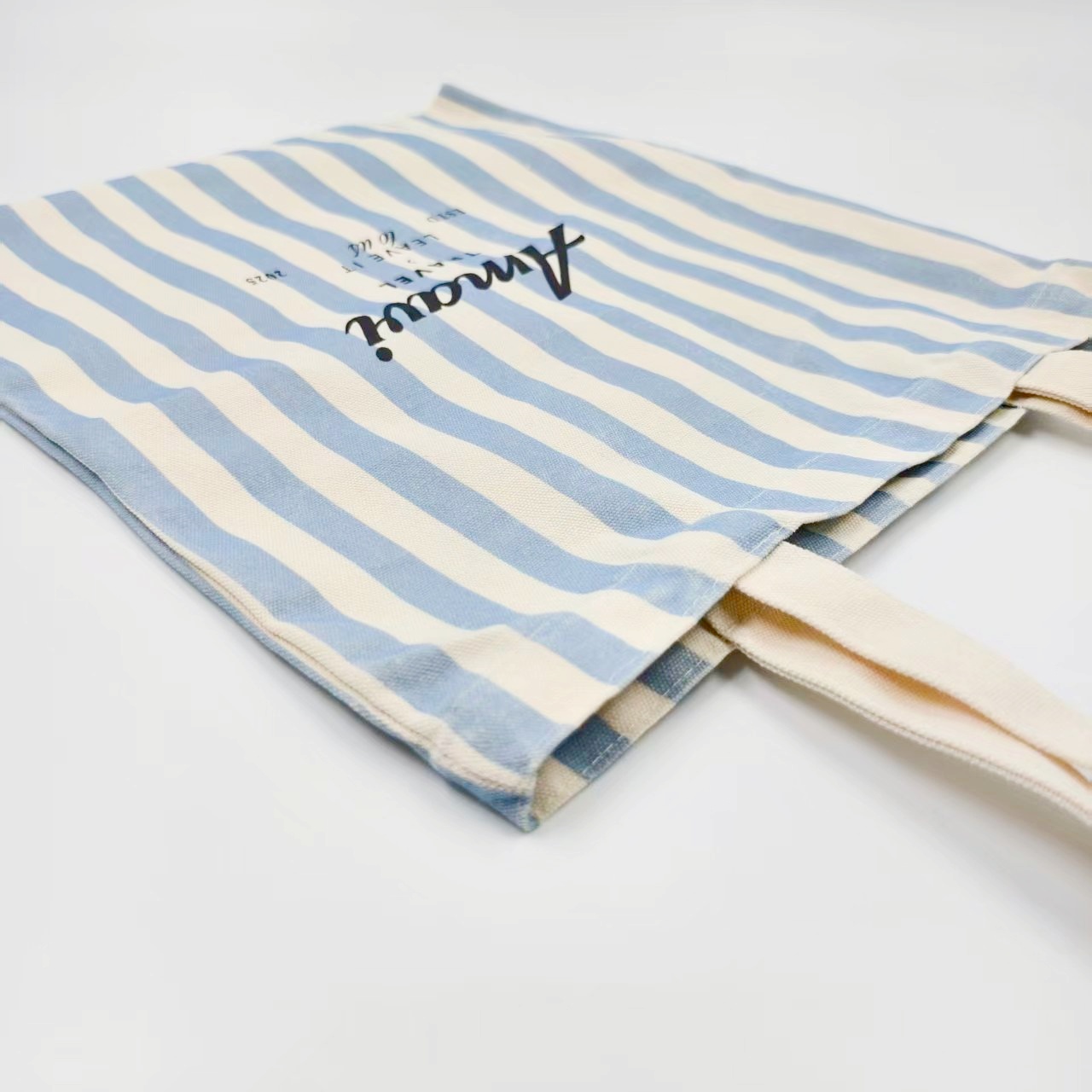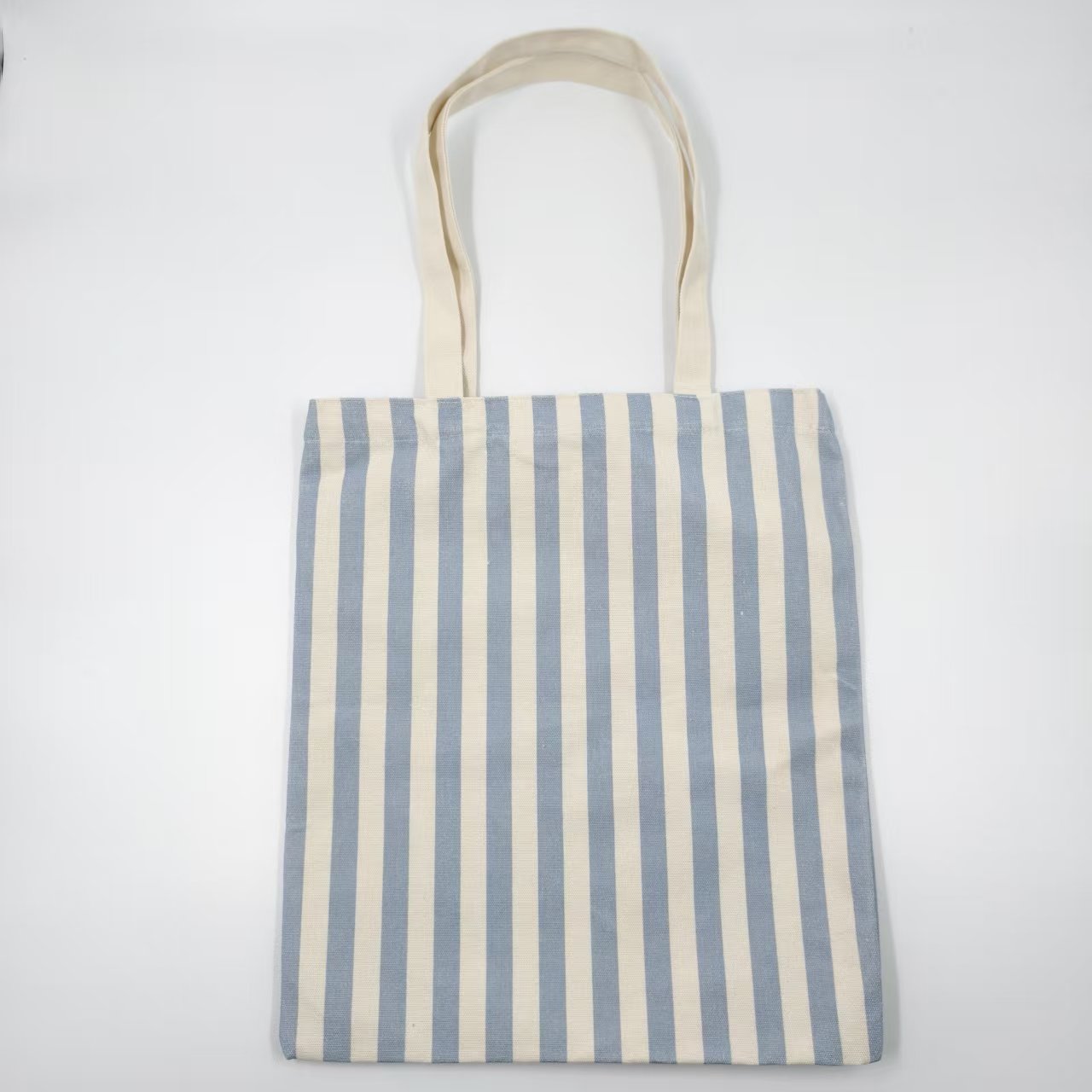 蓝色条纹环保帆布手提袋,可定制LOGO印花,大容量可重复使用购物袋